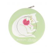 Astuccio con motivo “gatto e palla” su sfondo verde, diametro 5 cm, spessore 1,3 cm, lunghezza 150 cm.