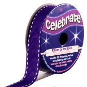 Bobina Grana grossa Celebrate Grosgrain viola con cucitura bianca - 15 mm x 4 m