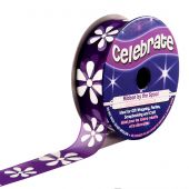 Organza su un rotolo Celebrate Organza viola con stampa di fiori bianchi - 15 mm x 3,5 m