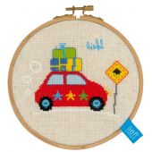 Kit per ricamo a punto croce con tamburo Vervaco Vacanze in auto II